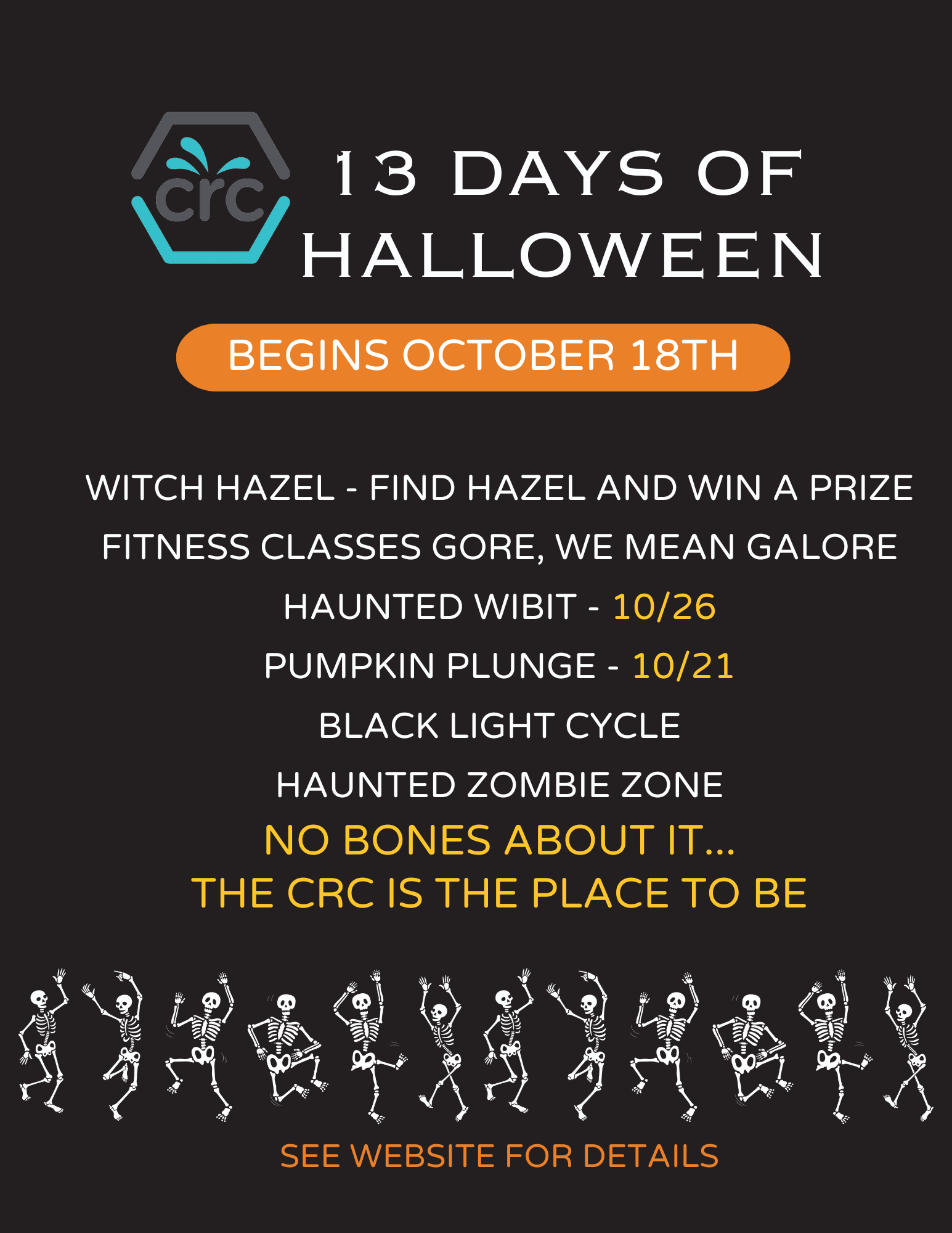 Come join us for our 13 Days of Halloween. Events, Witch Hazel, Haunted Zombie Zone.