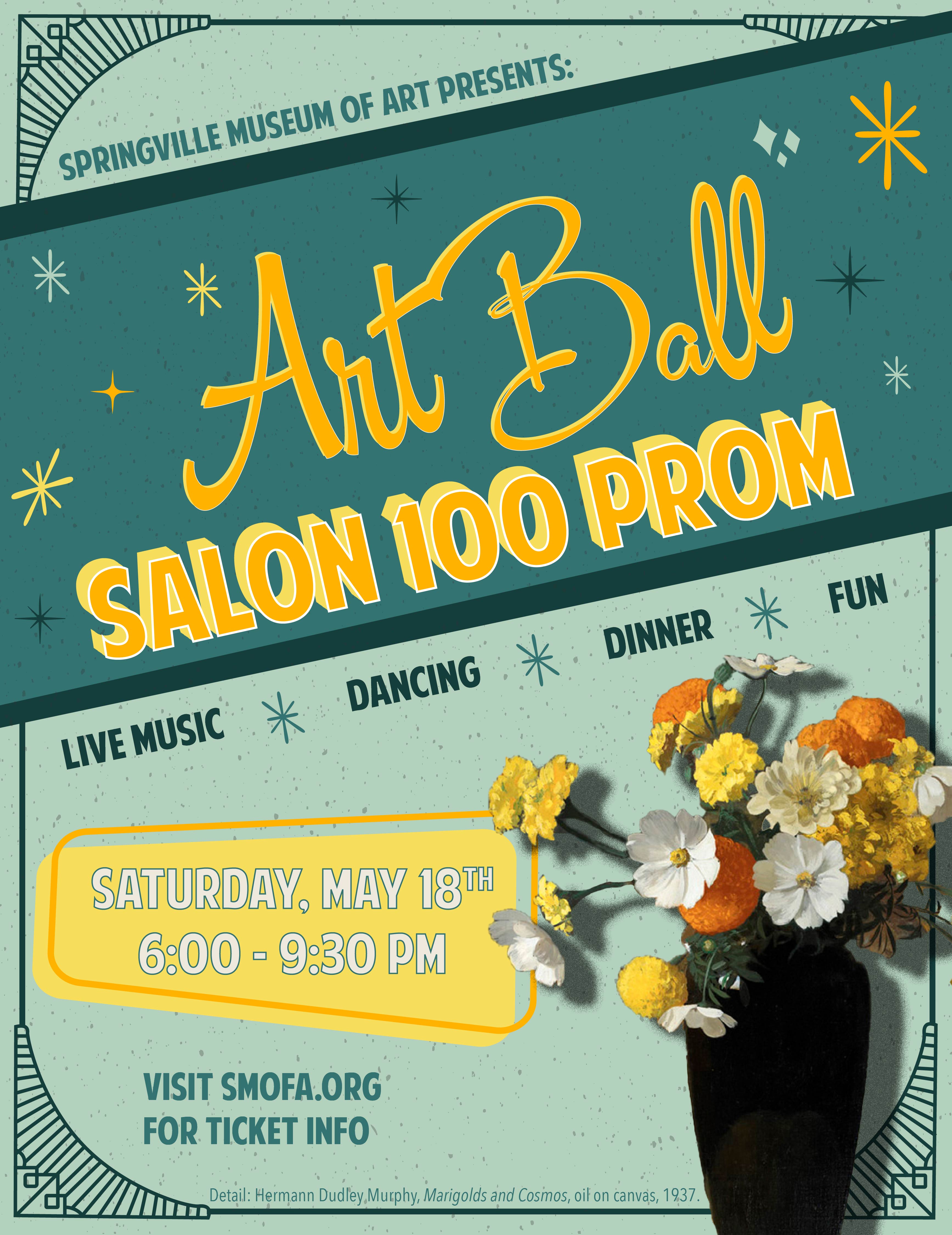 The Springville Museum of Art’s Annual Art Ball is a community event at the Museum. This year, help us celebrate the 100 year anniversary of our Spring Salon! Join us for a Prom Theme night with a light dinner, dancing with a live band and DJ, activities, and our Art Royalty Presentation.. We can’t wait to share this wonderful evening with you!