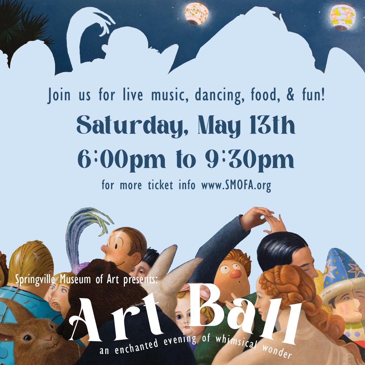 The Springville Museum of Art’s Annual Art Ball is a community event at the Museum. Join us for a light dinner, dancing with a live band and DJ, art making activities, and our Art Royalty Presentation. We can’t wait to share this enchanted evening of whimsy and wonder with you!