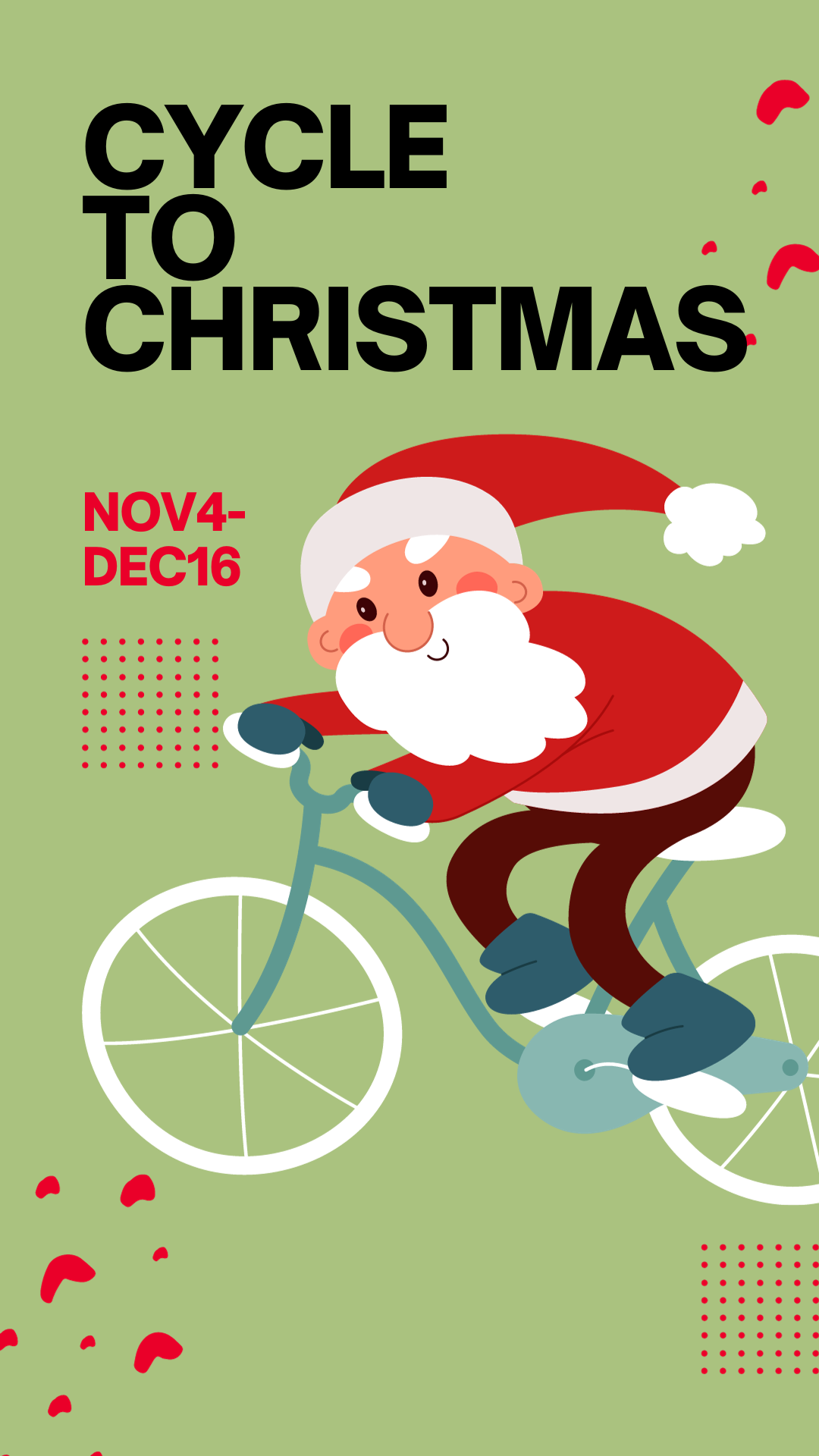 Join us in cycling to Christmas from November 4th to December 16th. Record your miles from a cycle class here at the CRC or mileage on our bikes or your miles from outside. Classes at other Recreation Centers will not be counted.